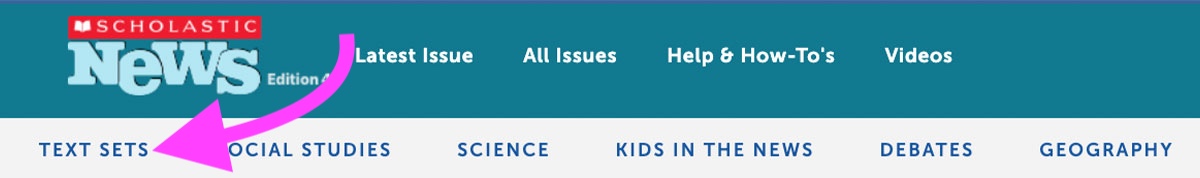 You can reach the text sets from anywhere on our website by clicking the Text Sets link in the navigation bar at the top of the page.
